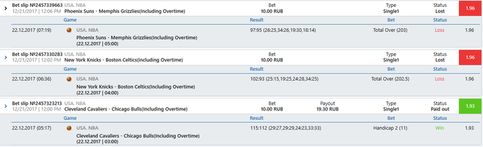 20.12.2017 04:00 Basketball. USA. NBA. "Milwaukee Bucks" - "Cleveland Cavaliers" ( Inc. OT ) : AH 2 (-2) 1.96 10.00 RUB