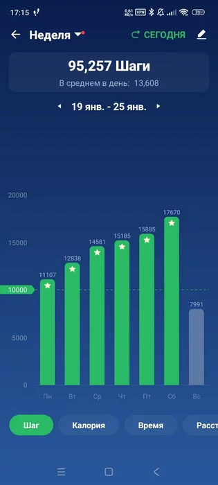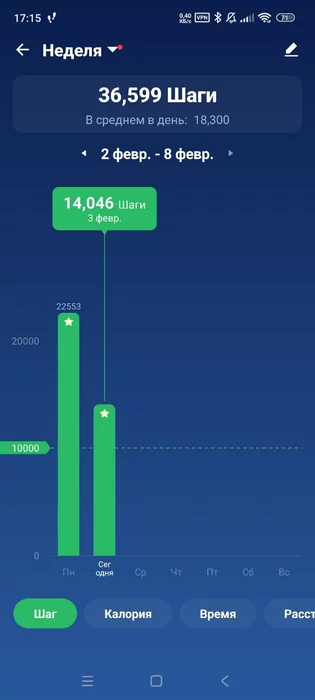 джонни-мнемоник @ 04.02.26При средней скорости 4.2- 4.4 км\ч( вальяжная ходьба) - 10000 шагов занимают примерно 1ч 45 минут непрерывного шага. При средней активности и не фул-сидячем овощном образе жизни - вполне реальная цифра даже для пассивного нахаживания.