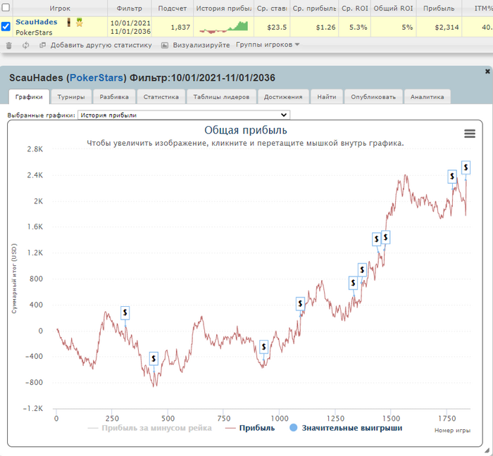 ну и график по МТТ с Кинга, наигрыш маленький если что, но не часто МТТ катаю, так что какой есть