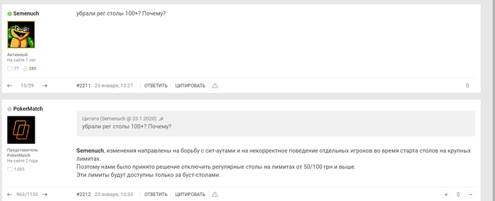 Для информирования комьюнити мы добавили информационное сообщение о блокировке денег к обзорам и связанным с PokerMatch материалам, а также добавили соответствующее объявление в теме рума на форуме.