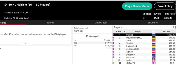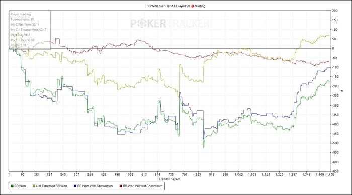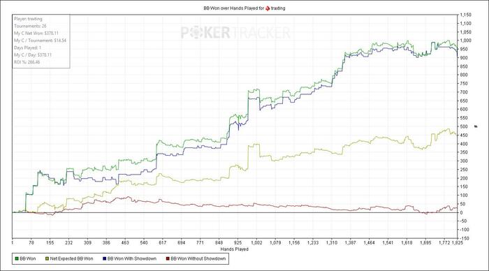 Сумасшедший день: и сам играл хреново (много тупых раздач сыграл), и ещё и унижали в самый важный момент. Выехал за счёт ноков.