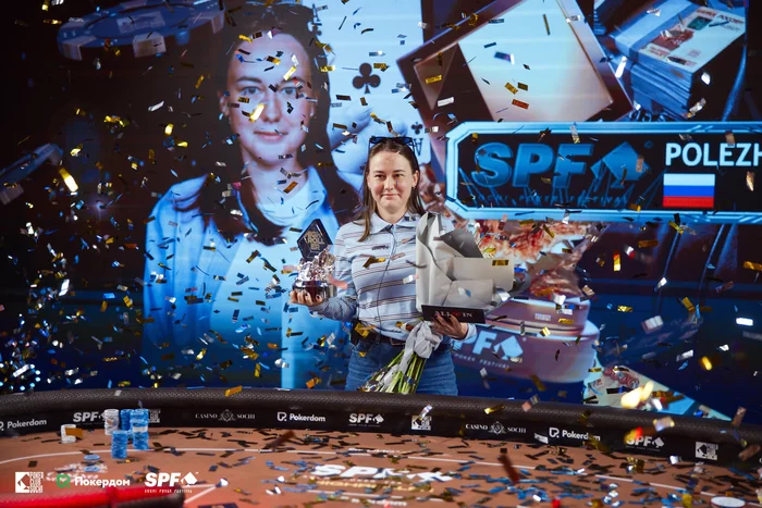 Ксения довольно долго не могла выиграть женский турнир (даже серийный Main Event поддался быстрее), но после первой победы в апреле прошлого года ее очень сложно остановить. Вот и сегодня Полежаева вышла на финальный стол с отрывом чиплидером и уверенно довела дело до победы. Поздравляем!