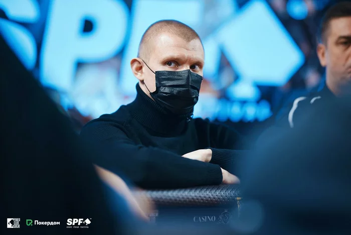 Владислав Иванов (145,000) открылся 16,000 с баттона, Виталий Панков (370,000) запушил с малого блайнда, на большом блайнде Антон Данилов выбросил с таким же стеком, как у Иванова, а Владислав уравнял с .