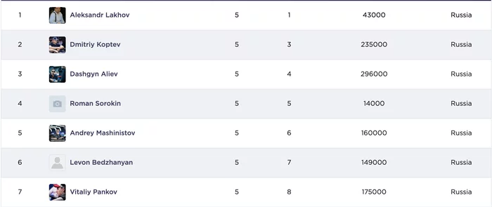 Дашгын Алиев открылся 40,000 с катоффа, Левон Беджанян (65,000) уравнял на катоффе, Дмитрий Коптев доставил на ВВ.