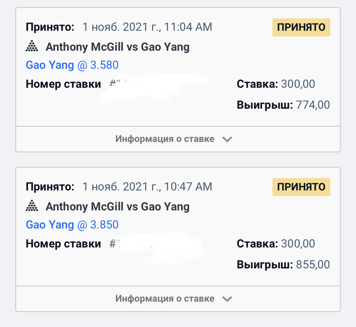 Начну со стандартной ставки на молодого китайца. Макгилл, к слову, наебал с тем что он играть не намерен, последние матчи выступает будь здоров как, но даже против такого Магкилла бороться надо, тем более до 4 побед