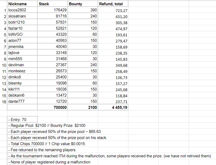 Возможно, Вы не обратили достаточное внимание на пост 2777, в котором были описаны дополнительные выплаты и компенсации нашим игрокам, в том числе по упомянутому Вами турниру: