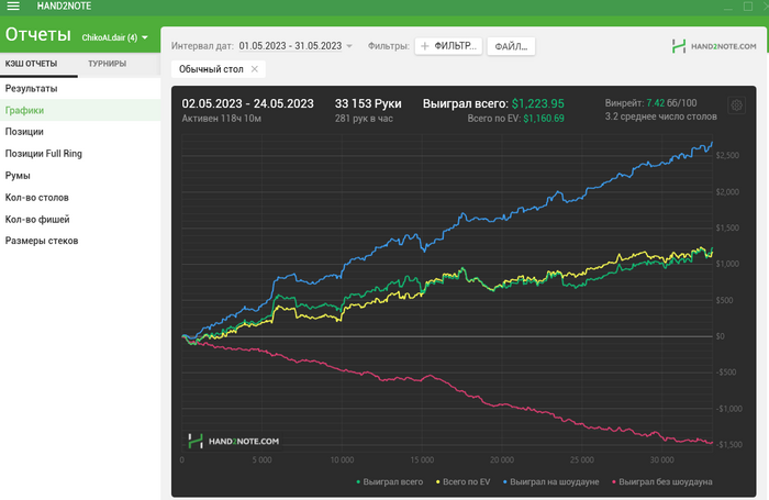 Май получился непростым, играл мало по объективным и субъективным причинам. Словил какую-то покерную усталость. Получается около половины месяца просто отдыхал, гулял и смотрел фильмы. Сейчас чувствую себя отдохнувшим и мотивированным