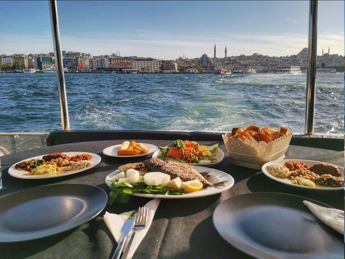 Однако ближе к концу произошло приятное событие, которое позволило вывести сессию путешествие в околоноль. На просторах airBnB я нашел раздел "впечатления", где предлагаются различные услуги наподобие экскурсий, мастер-классов и т.п. Там я забронировал частный тур по Босфору на яхте на двоих с женой, устроив ей небольшой романтический сюрприз. Ребенка оставили на попечение бабушек и отправились к причалу. Настроение было, мягко говоря, так себе.