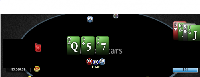 Против этого диапазона кола флопа на терне мы имеем 23%, а вкладываем в банк - 25%. Сомнительный пуш оказался околонулевым в расчетах