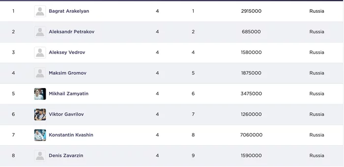 8. Дмитрий Васин — 735 у.е.