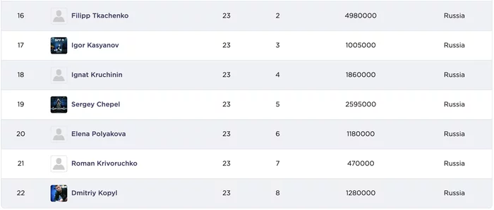 Сергей Бочкарев занял восьмое место и получил 6,150 у.е. призовых.
