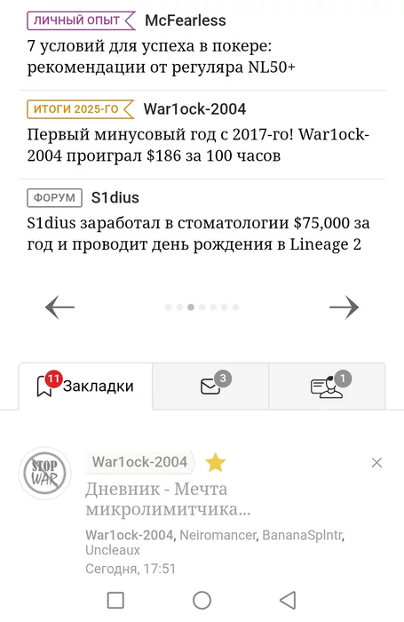 Сегодня последний день отпуска. Внимание! Вопрос! Сколько рук на НЛ2 за время отпуска откатал игрок с ником War1ock-2004? Правильный ответ :