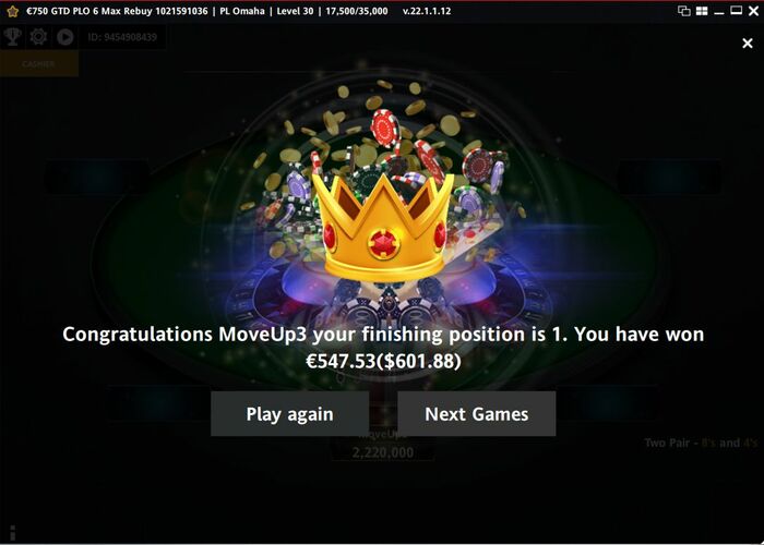 За эти дни сыграл несколько $52 KO, $210 KO и один $525 KO, особых успехов не было. В 525-м сделал 2 нока, но дальше не срослось. Продолжаем гриндить.
