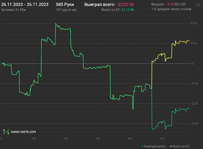 Отыграл околоидеально с точки зрения концентрации. Мне вчера тоже так казалось, но потом отфильтровал евлосс по визарду и там раздачи будто я под солями)) друган теперь угорает, что в покере есть старая школа, новая школа и моя (вечерняя школа покера) хахаха... тупо вечерка... как бы и из нее не вылететь