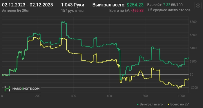 Хз почему уже который раз убеждаюсь, что для меня гораздо лучше работает играть небольшие сессии и сохранять интерес к игре, а не укатываться с пеной у рта по 6-8 часов на автопилоте типа с фишом за столом у нас же в любом случае есть винрейт