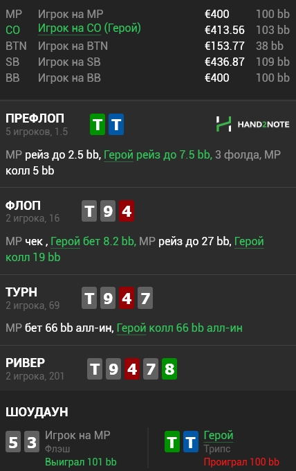 Brdz1, так а че, колл почти по шансам на терне, но пуш флоп проще смотрится, как будто ниче не выкидывает враг на флопе, только если не агромакака. А если агро, то и терн колоть надо