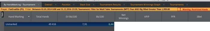 Недозаносы бигов и бигеров 11-55,которых до жопы,уж не буду выкладывать. Выводы простые : селект и терпение.Нескуповские СМы и вармапы откладываются до очень большого банкролла,ну или буду играть в долях.А всем остальным памятка,что МТТ - это в основном рандом.