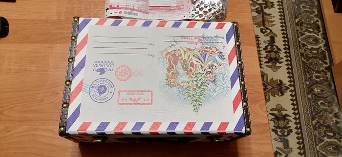 Уже придя домой после хоккея, поставил чемоданчик с сюрпризом туда, где ему самое место - под ёлочку, и открытку от Gipsyteam, которую прочитал только после хоккея, туда же