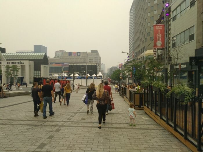 Если кто не в курсе, то в Канаде идут сильные лесные пожары, в воскресенье очень заметный смог был и в Монреале. Конечно, это несравнимо с той жестью, что была в Нью-Йорке пару недель назад, но все равно так себе.