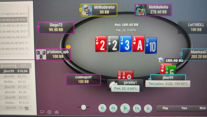 Играем $1/2 в Тигре, очень уважаемый оппонент играет, лимп 2$, лимп 2$, он почти каждую раздачу рейз $75-$100 и колит олыны, уже залил тыщи полторы, последняя докупка у него, походу. Товарищ идёт +$1к, я пока в нуле, не заходит :( Белые по $1$, он на бу рейз $75, зелёные по $25.