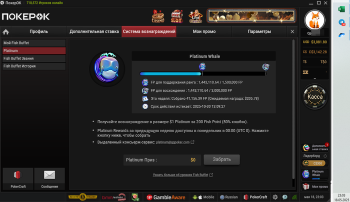 preacher, все уже закончилось, победа. Банкрол челендж потерял около 30$ фишбафета, о чем писала ранее. Для победы мне достаточно было 5 места. Сейчас сделаю пост со скринами.