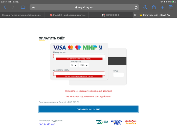 Если баланс не пополнился в течение 30 минут, напишите в саппорт и предоставьте чек (где будет видна сумма, время и получатель). Cвязаться со службой поддержки ПокерОК можно: