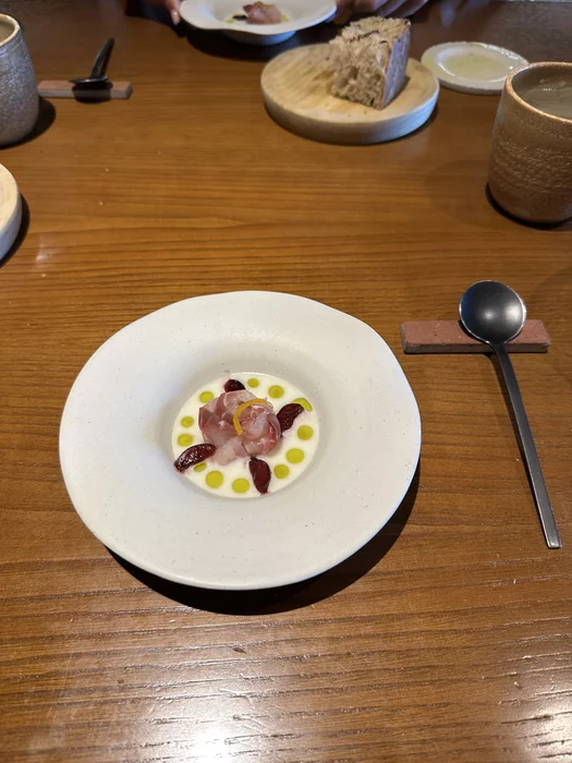 Фантастический сибас, нежнейший, тает во рту. Причем на сибаса мы сюда пришли еще раз в день отъезда на обед. Все также вкусно
