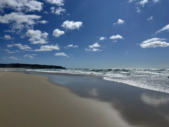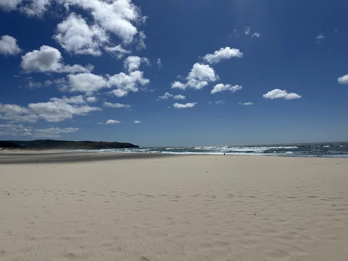 Съездили на Praia do Rostro. Это пляж с обратно стороны нашего полуострова, не закрытый бухтами. Волны там совсем другие, никто не купается. Ожидал серферов увидеть, но может время было неподходящее. Пляж почти дикий, рядом нет города, никаких домиков или гостиниц.