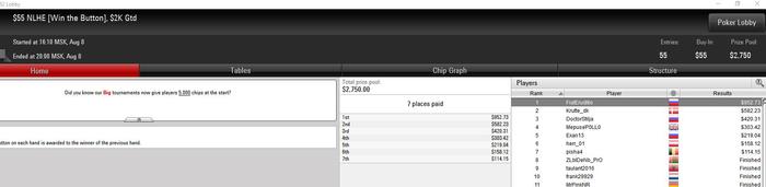 Fiat @ 19.8.2017 ,но самое главное,что успел выучить А62 флоп с пиковым тузом.Он мне попался на финалке,а я уже знал,что именно так надо играть J7(блочим AJ и А7).При том минимум одна карта у нас должна быть крестовой(лучше две,но две это уже у нас переап явный),чтобы блочить бекдорные крестовые блефы,потому что мы все равно позади против них.