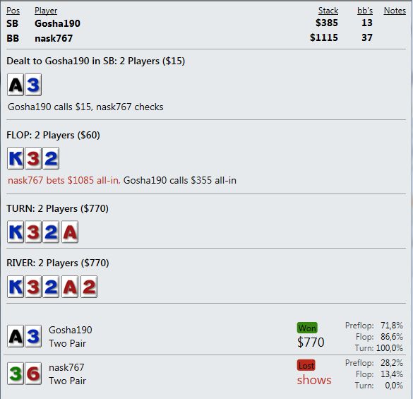 Ну и некоторые оппы просто в ступор приводят - играют, играют по карте, фолдят, прикидываются пассивными фишами и вдруг...