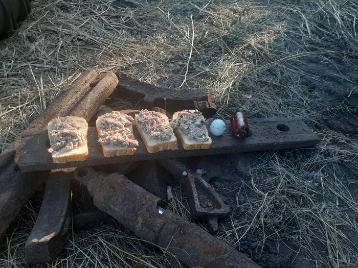 Сегодня на ужин бутеры с домашней тушёнкой, яичко и колбаска.