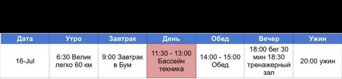 Кстати, а вот сегодняшнее расписание А. на сборах.