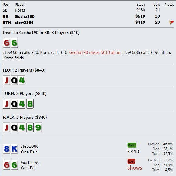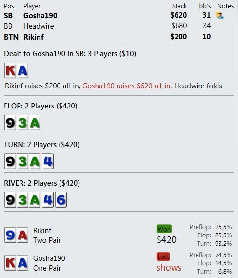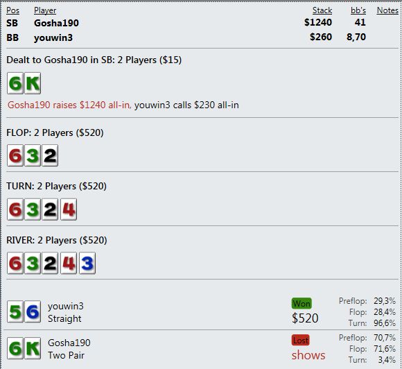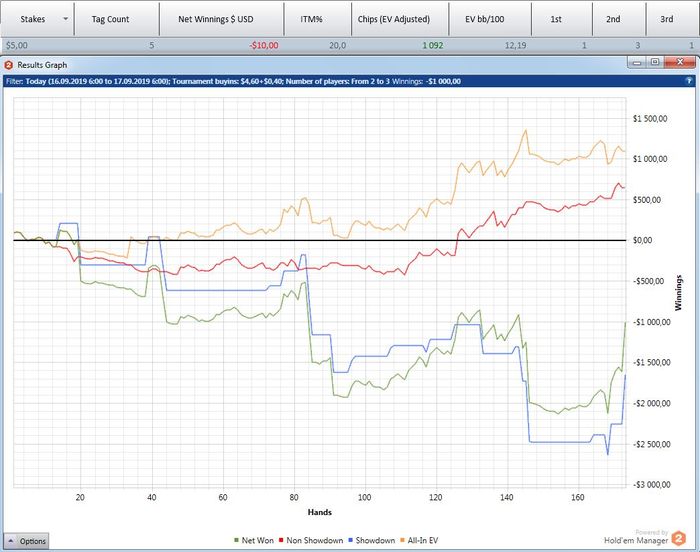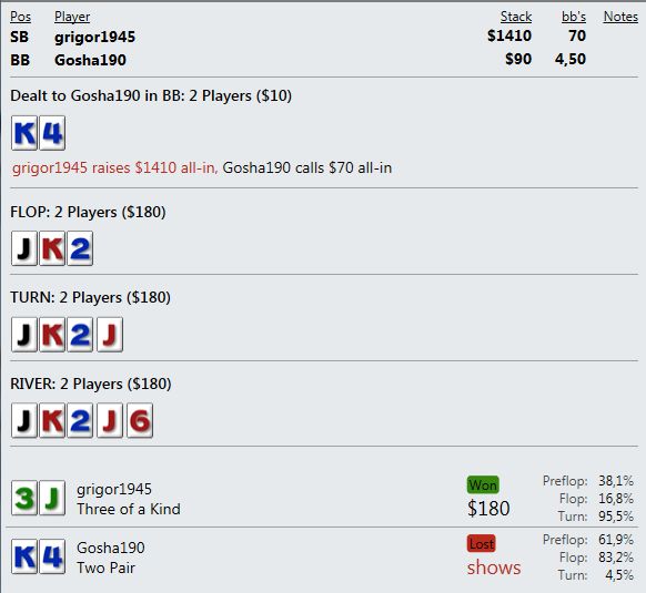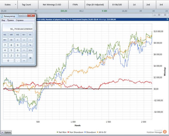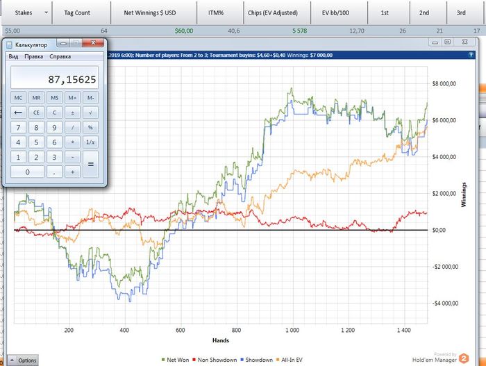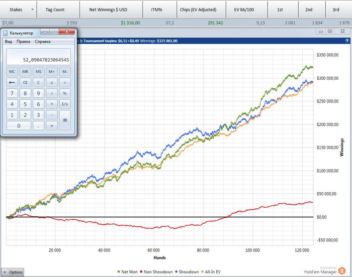 маенький-маенький)) На семерках уже не помню - там 3К турниров чуть не в ноль отыграл, а потом пошел вверх. Помню вывел даже штуку бачей, а ЕВ наверно 40-50- с гаком было. На пятерках нет дистанции- пока между 50 и 60 фишками.