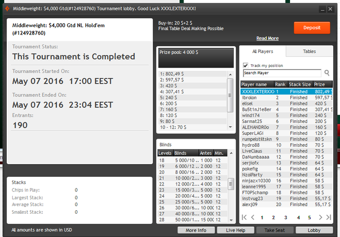 No Limit Holdem Tournament