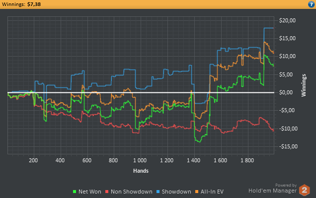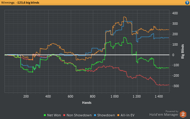 Еще.. я прыгнул на нл10, считаю, что смогу там играть в плюс. По EV я действительно в плюс играю, но по факту нет.