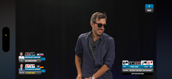 Финалка была очень интересной тем, что во первых стримилась на ютьюбе, во вторых топноки все еще были в игре до 3макса. ХА вышел довольно дорогой с уникальной ситуацией, где оставались еще 2 и 3 баунти и пакет и 2.5к разница в призах. Но помогло, что фишек было в 5 раз больше) ХА собственно тоже закончился мамаситой на ривере в пре.
