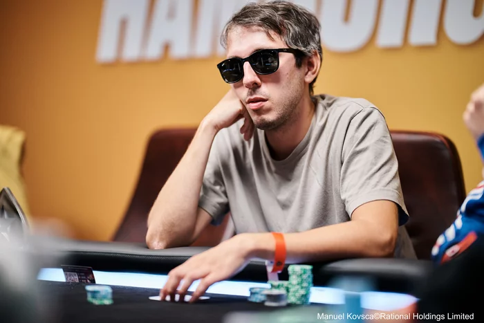 Смог занять 3 место, поделив в 3-макс и забрать 20000€, по сделке уступил немного чиплидеру (усталость, тв стол и с отрывом наибольший занос в жизни сказались). Учитывая, что начинал финалку 7м стеком, в 12максе после АТо<К9с оставался с 2.5б и в 7максе был чрезвычайно неприятный для меня исм-расклад - прекраснейший результат. Состав в целом был смешанный, много слабых игроков в поздней стадии, также несколько очень хороших регов.