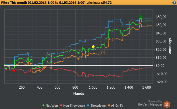 Не знаю, сяду сегодня катать или нет, так что вот отчет за сегодня! (культурная программа со своей аватарочкой). SDW_Rogue, разменял 1000! итоги дня: 15.02.2016 - nl10/nl16 /1455 рук% /190 мин. /+49,54 /бр: $1004