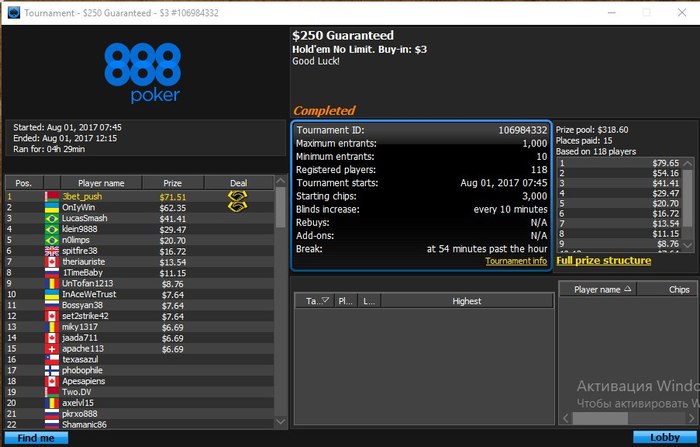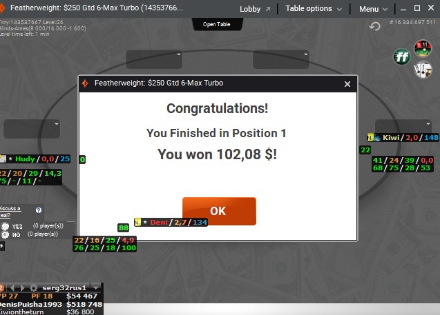 Закончил грузиться в 14.00, т.к. финалка была последним турниром на тот момент а грузить 4-5 турнира отдельно такое себе. Сейчас в магазин и на пляж, за окном порядка +25 в тени Завтра снова в бой, постараюсь начать чуть в районе 5 утра GL ME