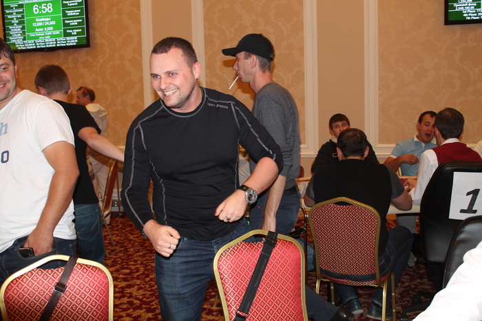 18:00 произошел старт турнира ACCUMULATOR день С Со старта открыто 9 столов, в игре 82 участника, гарантия турнира перебита при посадке!!! Несколько фотографий: Чиплидер дня В Виктор Кудинов Валентин Коверзнев из Новочеркасска Борис Тян из Краснодара Халид Титаев из Краснодара Роман Чургулия из Армавира Сергей Антонян из Ростова Михаил Симонов из Новочеркасска Победитель турнира Grand Event Карен Назарян из Армавира Игорь Касьянов из Ейска Александр Черников из Ростова Андрей Гренко из Краснодара Александр Ясногородский из Тольятти Роман Гаджиев из Ейска Владимир Карташов из Таганрога Олег Бембеев из Элисты Александр Пригарный из Краснодара Промежуточный чиплидер турнира Иван Изранов из Самары стек 2М Сергей Мартиросян из Ростова Иван Шнайдер из Сочи Овик Мецрицян из Москвы Юрий Ли из Краснодара Араик Амбарцумян из Армении Сергей Остапчук из Сочи Владимир Лубянов из Таганрога Антон Захарчук из Аксай Александр Барабулин из Астрахани Андрей Филиппов из Йошкар-Олы Александр Самохин из Ростова Сергей Мартиросян из Тольятти Евгений Овчаренко из Краснодара устояли в тройном алл-ин