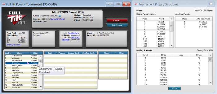 Full Tilt Pot Limit 5 Card Draw $30/$60 - 2 players
