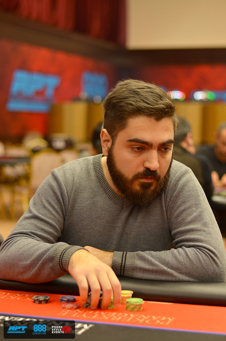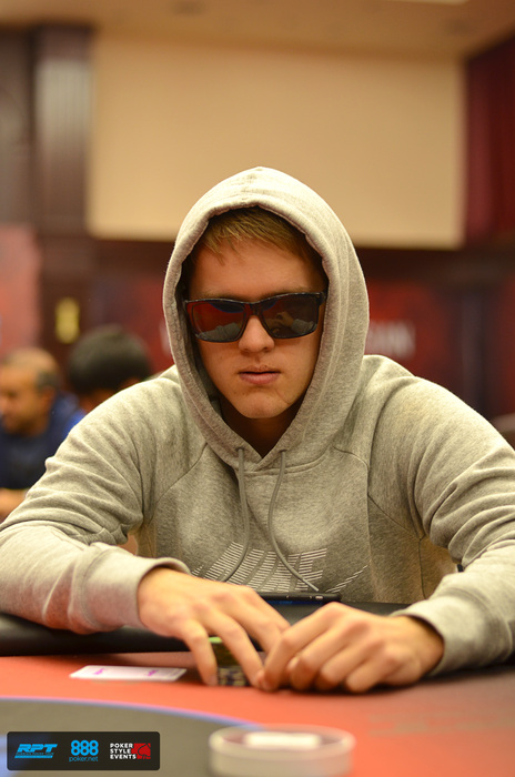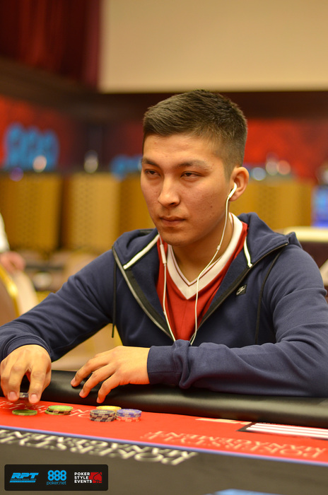 С самого начала игрового дня YOUNG GUNS CHAMPIONSHIP (DAY 1B) мы застали Андрея с неполным стеком. На момент встречи он как раз удвоился AJ > 77, а затем нажил ещё фишек в следующей же раздаче против Карена. Уровень 8, блайнды 500 / 1000, анте 100.
