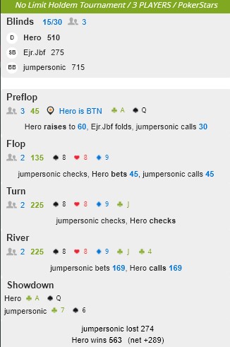 Вот человек 37\0 с агрессией 0.9 ПЕРВЫЙ раз рейзит, и ставит пусть корявые, но 3 банки. Это НИКОГДА не рука хуже моего трипса