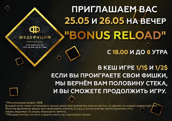 В субботу 19 мая в покерном клубе "Федерация" вновь состоится 2 турнира по омахе.