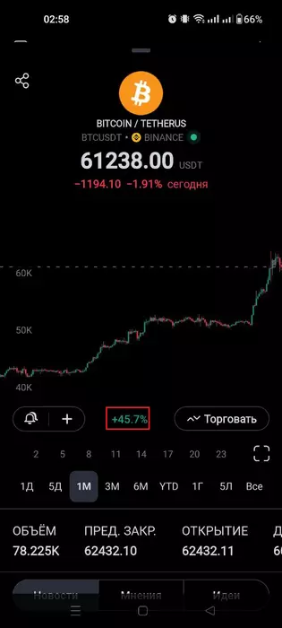 BTC (Биткоин) - +45.93%