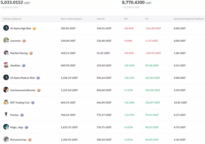 Romana88, твои трейдеры торгуют со стопами или без? Часами сидел отбирал трейдеров с плавно растущий графиком и небольшой просадкой за 90 дней, но в итоге вижу похожую картину уже несколько раз: трейдеры (или боты) торгуют без стопов, сидят в огромных убытках, доливают денег чтобы дальше удерживать позу и не фиксировать убыток (не портить себе график). А балансы инвесторов, разумеется, ликвидируются. В итоге меня закрывает по маржин колу, а у трейдера и дальше более менее красивый график и куча висяков, которые посторонним не всегда даже видно.