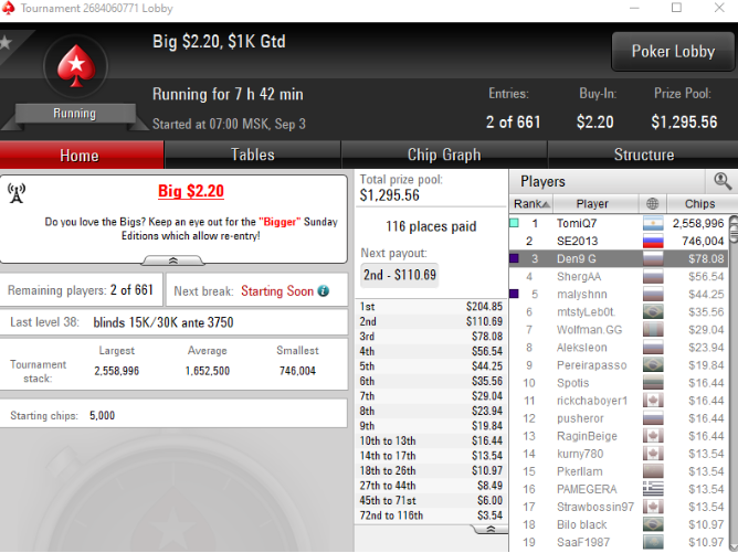 Честно - не расстроен. тк, в топ 16 удалось раскрутиться с 0.5бб