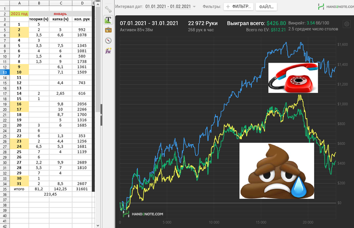 А также понял что более 4 столов играть для меня вредно . а топ винрейт вообще на трёх столах .