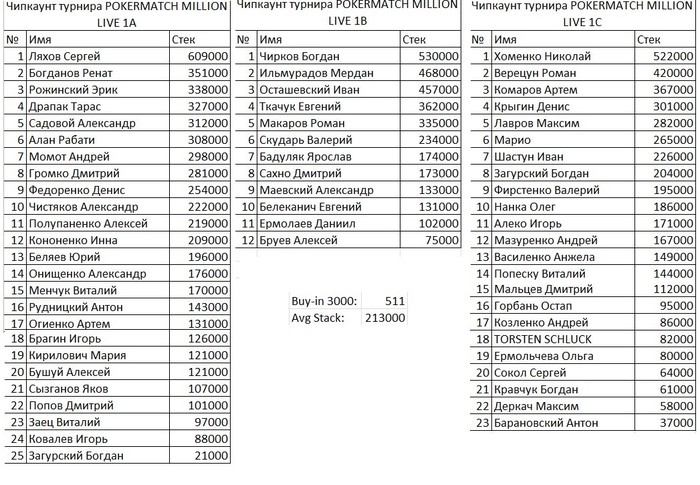 Завершилась поздняя регистрация во флайте 1С турнира PokerMatch Million Live. В этом флайте было сделан 171 вход, а общее количество входов за три флайта - 511! Сегодня игра продолжится еще шесть уровней