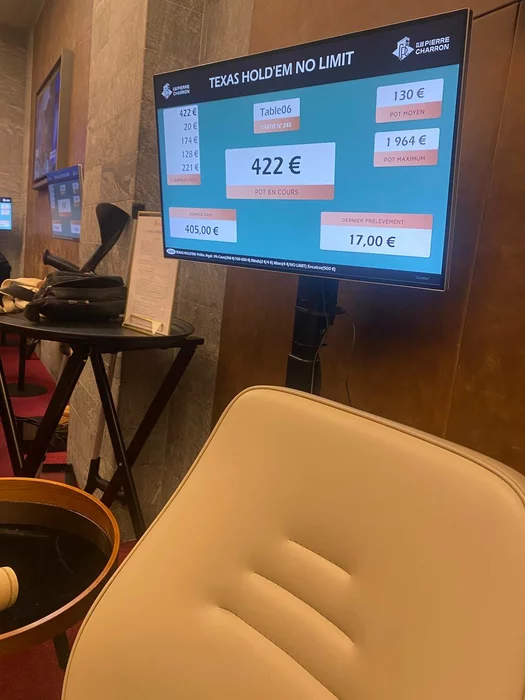 Я пришел в 7 вечера и был удивлен количеством людей. Все столы заняты и очередь по 7+ человек. Флор сказал что игра стартует каждый день в 13:30 , но очередь на улице лучше занимать заранее. Во всех покерных клубах Франции комиссия в кеш играх одинаковая, 4%, без кепа и рейк берется даже если флоп не открыли . Из бесплатного - вода в кулере у бара , остальное за деньги. Кофе размером с наперсток и тарелка фруктов 20€.